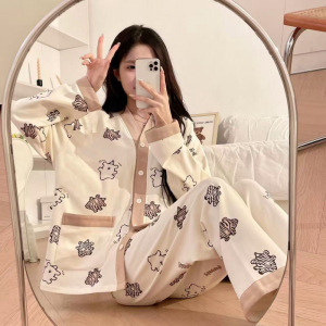 睡衣女春秋季2025年新款长袖高级感可爱薄款可外穿家居服大码套装