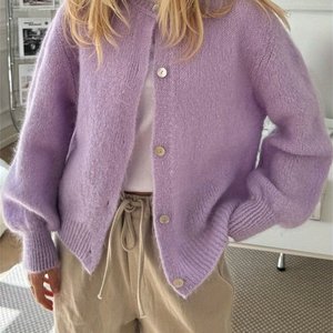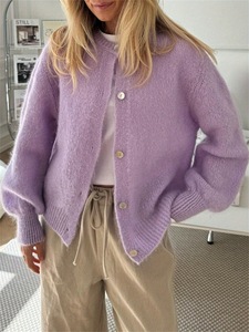 2025年新作クロスボーダーヨーロッパとアメリカの女性用ソフトニットカーディガン長袖ボタンセーター