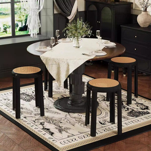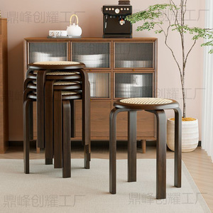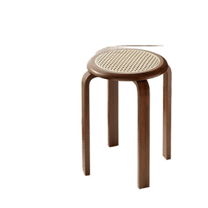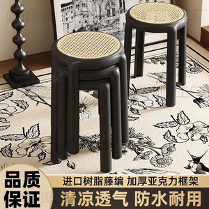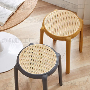 家庭用厚みのある模造籐のレトロなラウンドスツールは積み重ねて収納でき、シンプルなスツールは簡単に設置でき、4本の脚のX字型の小さなベンチです。
