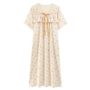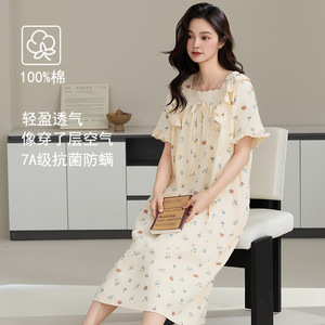 クラス A 抗菌ナイトガウン女性の夏の純粋な綿の半袖ドレスロングプラスサイズは外で着用できます女性のための綿のパジャマ