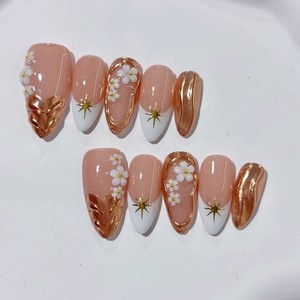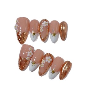 纯手工穿戴甲猫眼欧美手绘花裸色雕花杏仁甲贴高级感显白成品甲片