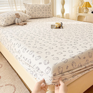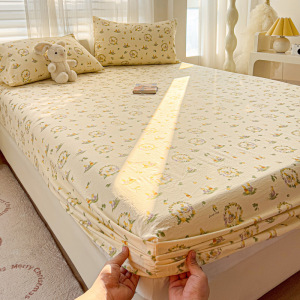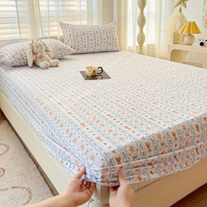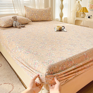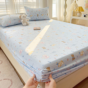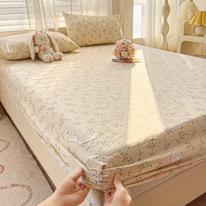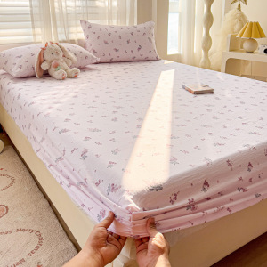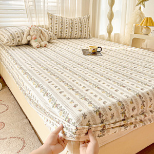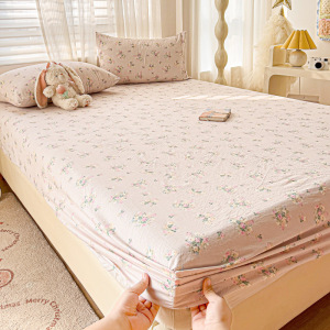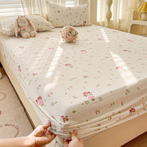 A类云感提花床笠三件套小清新碎花宿舍双人床单单件防尘罩床罩