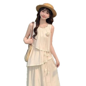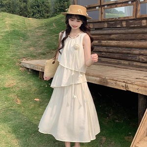 夏季不规则设计感连衣裙镂空圆领宽松显瘦度假风气质甜美中长裙