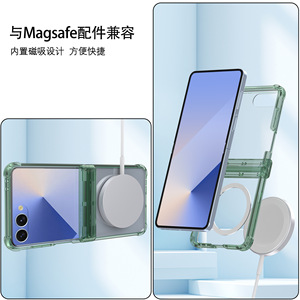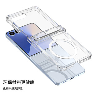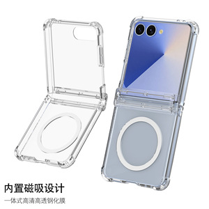 适用三星galaxy Z Flip7 手机壳磁吸无线充中轴铰链透明手机保护