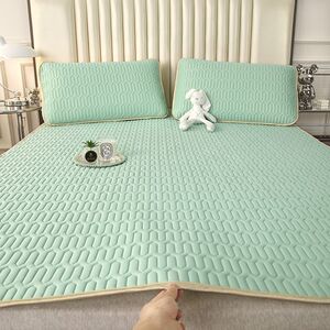 夏用アイスシルク天然ラテックスマット3点セット折りたたみ寮生シングル洗える滑り止めエアコンソフトマット