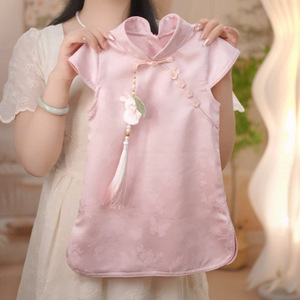 现货AC683【粉兔】女童织锦缎面夏季国风旗袍