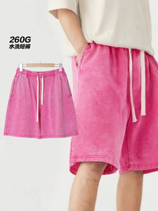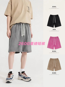 2025春夏260Gヘビーウェイトショートパンツベーシック無地スウェットパンツストリートルーズフィット五分丈パンツメンズカジュアルスポーツパンツ