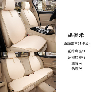 カーシートクッション オールシーズン対応 シングルシートクッション シングルバットクッション 車後部座席 3点セット リネン
