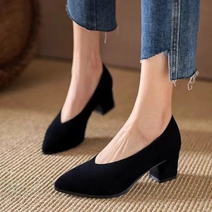 長時間立っても疲れにくいソフトレザー、ブラックの面接作業靴、ハイヒール、太ヒール、プロ仕事靴、シングルシューズ、おしゃれな婦人靴