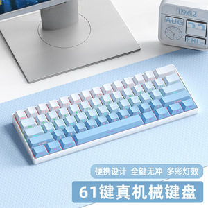 F61 有線バックライトメカニカルキーボードポータブル小型キーボードコンピュータゲームオフィス周辺機器 61 キー茶赤軸