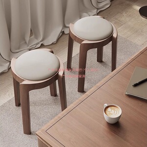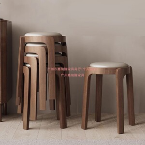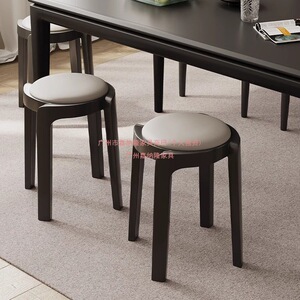 实木凳子家用可叠放板凳餐桌圆凳现代简约创意餐椅轻奢软包小椅子