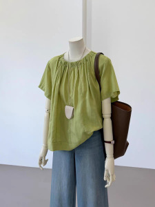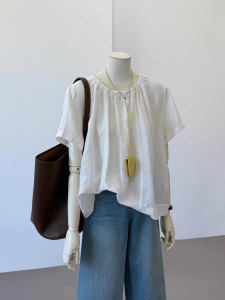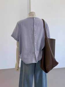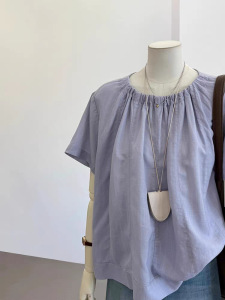 フレンチレトロパープルラウンドネック半袖シャツ女性のための 2025 夏の新しいファッションシックな年齢を減らす甘い通勤トップ