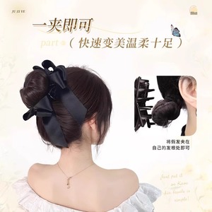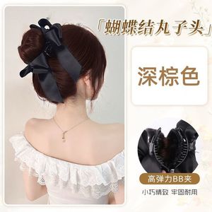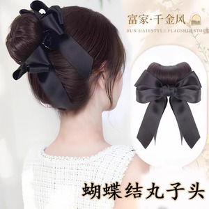 女性用ボールヘッドウィッグ、模擬ヘアリボン、高めの鶏毛のつぼみヘアアクセサリー、クリップオンリボンウィッグバッグ