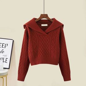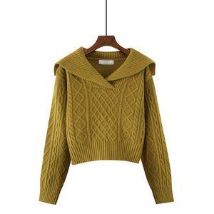 海军领复古女装毛衣高腰短款麻花2025年秋冬软糯套头衫长袖针织衫