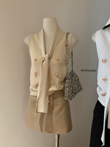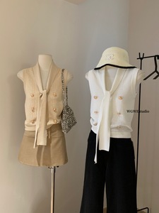 【WGWE】6183 新しい夏スタイルフレンチライトラグジュアリービッグブランド気質Vネックストラップノースリーブセーターレディーストップス