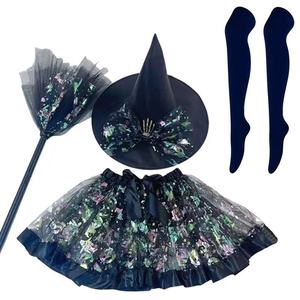 厂家直销跨境万圣节派对成人服饰网纱裙女巫帽蝙蝠紫色巫婆套装
