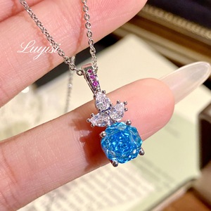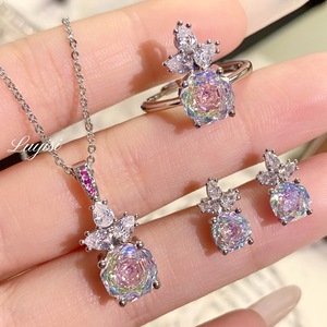 新款轻奢八角千禧玫瑰切玫红钻吊坠豪镶高碳钻海蓝钻戒指耳钉套装