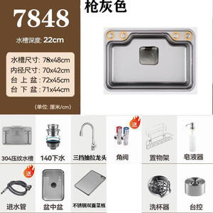 【枪灰7848CM】集渣小米粒压纹-A套餐:单槽无龙头+基础配件)