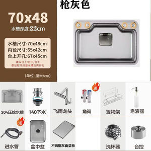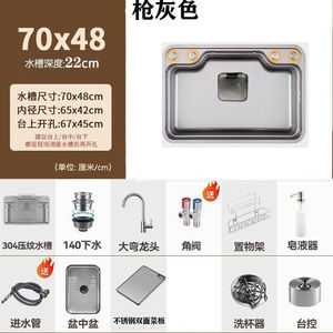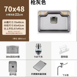 【枪灰7048CM】集渣小米粒压纹-A套餐:单槽无龙头+基础配件)