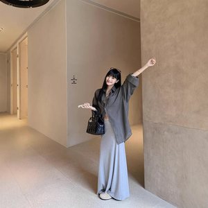 2025年夏の新作のゆったりとしたレイジーカジュアル日焼け止めシャツ+ハイウエストカジュアルスカートファッションスーツのリアルショット
