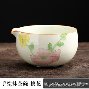 手描き桃の花抹茶茶碗