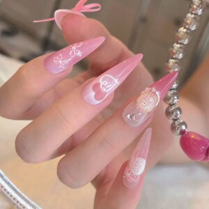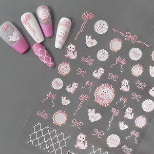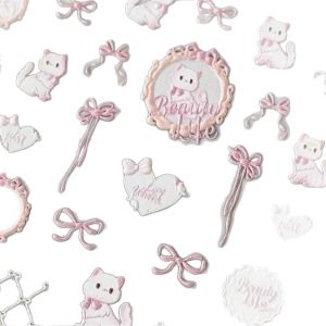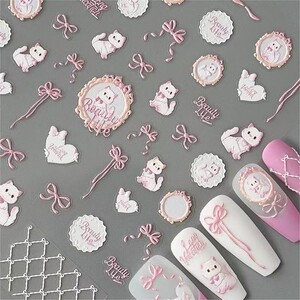 小红书同款可爱蝴蝶结猫咪法式奶油可爱风爱心浮雕美甲贴纸饰品贴
