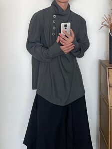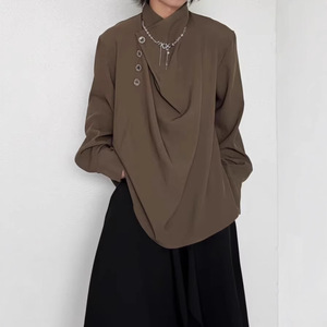 山本耀司春夏设计感小众衬衣男女同款立领暗黑风不规则高级感衬衫