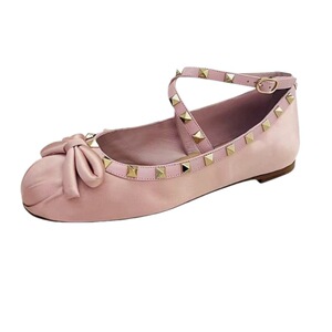 纯原 交叉带芭蕾舞鞋仙女蝴蝶结复古玛丽珍铆钉平底绸缎V家单鞋女