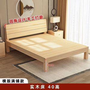 实木床+40腿长+床垫+双靠枕【综合】+密铺