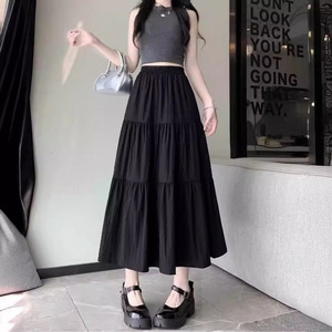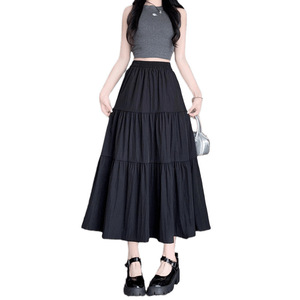 ホワイトケーキスカート、アンブレラスカート、レディース夏新作ドレープヒップカバープリーツスカート、ロングスカート、小柄な人向けスカート