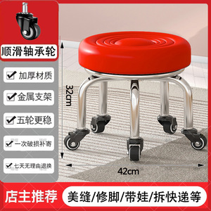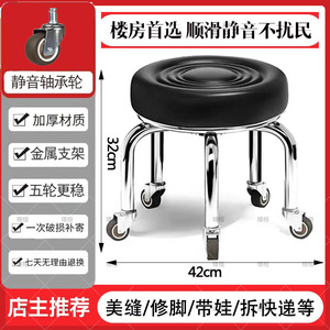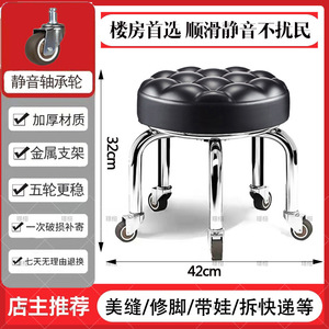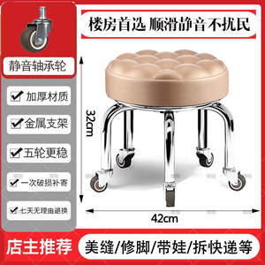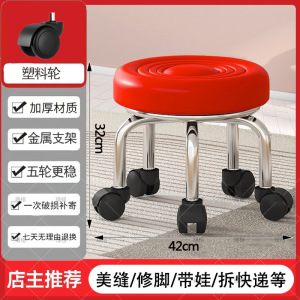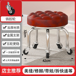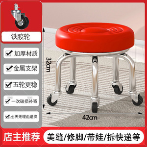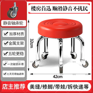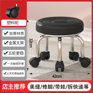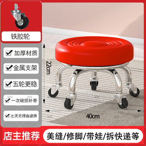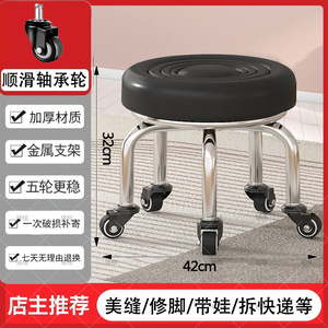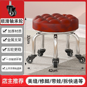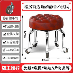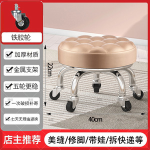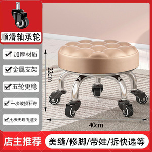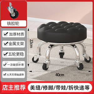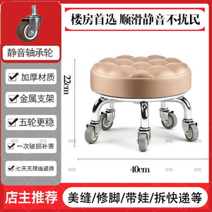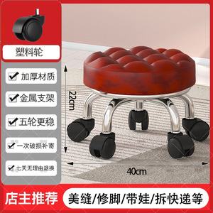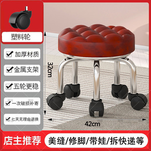 ユニバーサルホイール小さなスツール家庭用ラウンドスツール美しい縫い目ペディキュア子供用幼児スツールフットバスプーリー付き小さなベンチミュート