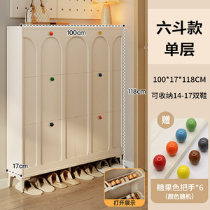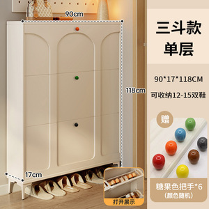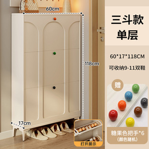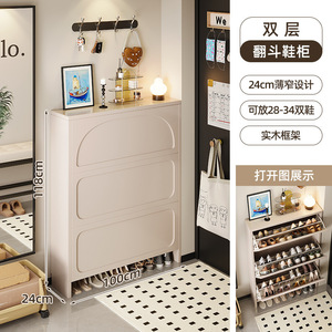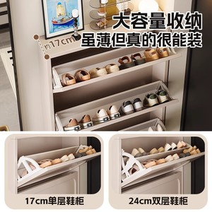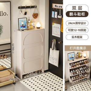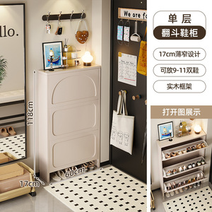 超薄型靴キャビネット、非常に狭いホームエントランス、2025年の新しいクリームスタイルの屋内エントランスキャビネット、ダンプシューズラック