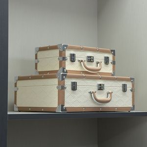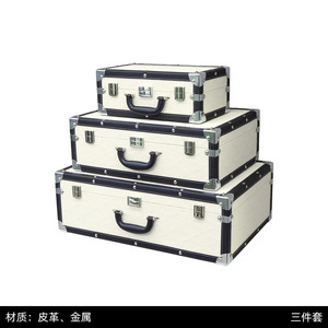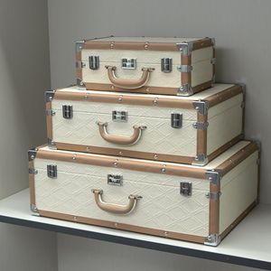 ライトベージュ植毛レザーモデルルームスーツケースソフト装飾ホームクローク収納ボックス展示ホール装飾装飾品