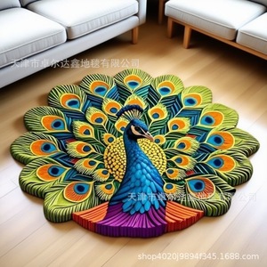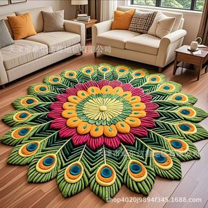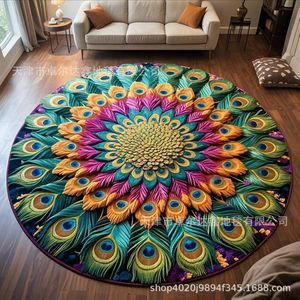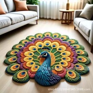 3D ビジュアル立体フロアマット孔雀の羽ハイエンドリビングルームベッドルームベッドサイドフロアマット速乾性滑り止め吸収性フロアマット