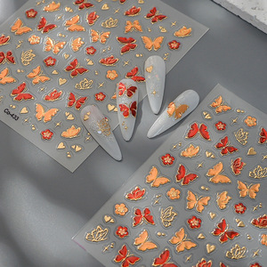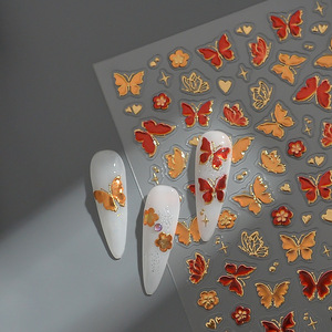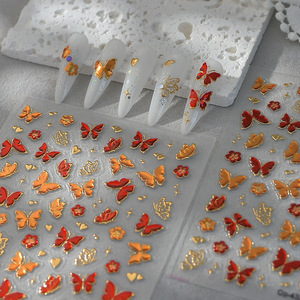 ダブルクラフトアイス透明赤蝶ネイルアートステッカーホットスタンピング粘着ネイルステッカーネイルジュエリーゼリー接着剤シリーズフェイスステッカー