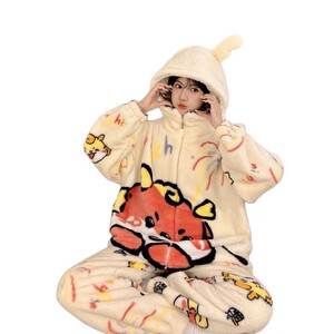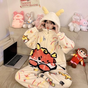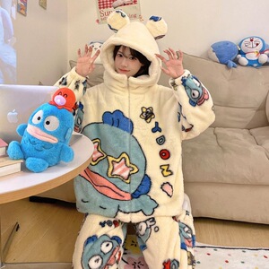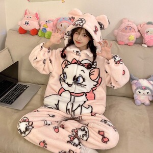 【实体店】冬季长袖睡衣女(法兰绒)定位印花甜美卡通拉链款家居
