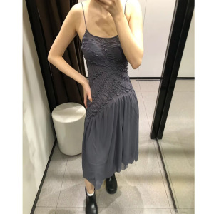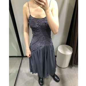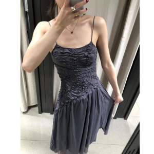外贸单!女装2025 欧美风时尚褶皱装饰不对称细带连衣裙女1937305