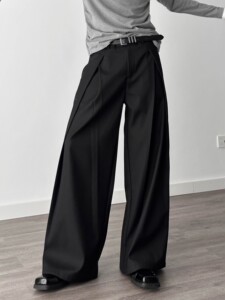 立体褶皱阔腿裤A字廓形休闲裤男夏季新款设计感宽松垂感拖地西裤