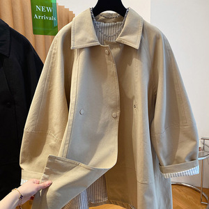 英伦复古风翻领风衣外套春季新款韩版宽松休闲开衫中长款显瘦上衣