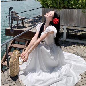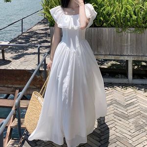 法式荷叶边一字肩连衣裙子女夏季2025新款超好看小众设计气质长裙