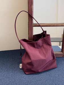 洗水尼龙布水桶包大容量托特包2025新款时尚休闲慵懒风单肩大包女