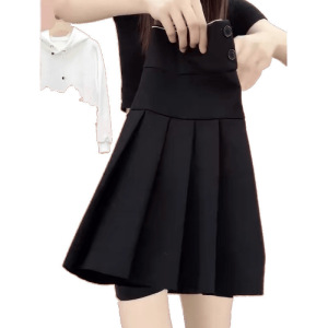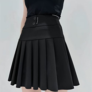 黒のスカートプリーツスカート 2024 夏の新デザインレタリングおなかコントロール弾性スカート