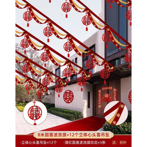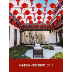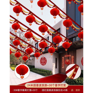 丸いウェーブフラッグ 24m 個 + 「幸せ」の文字が入ったランタン 30 個