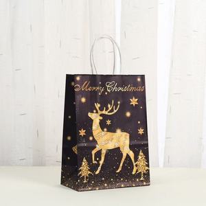 外贸新款圣诞节手提袋黑色烫金高级感礼品袋派对糖果伴手礼包装袋