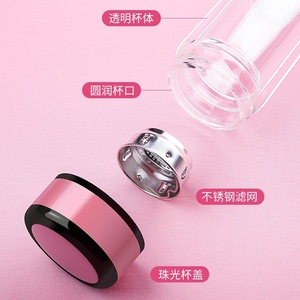 Wanxing 二層単層ガラスウォーターカップ女子学生インターネット有名人カップインかわいいバブルフラワーティーカッププリントロゴ