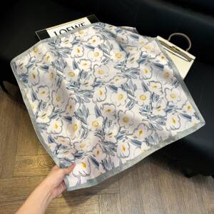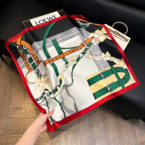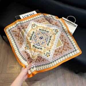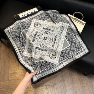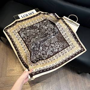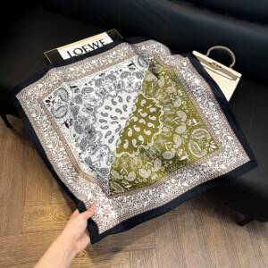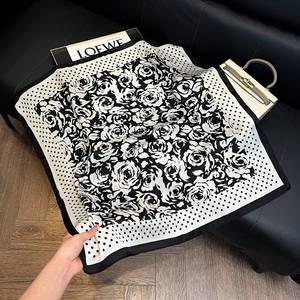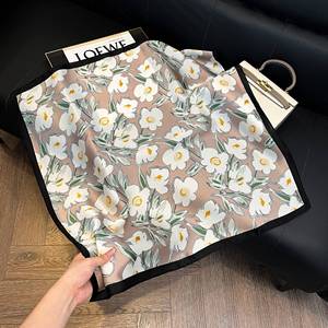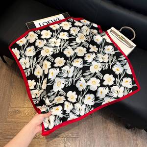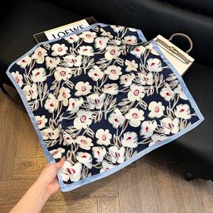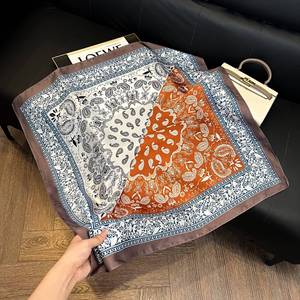 复古拼色腰果花仿真丝丝巾女春秋季百搭薄款小方巾装饰小领巾头巾