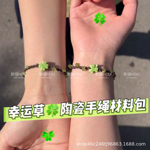 セラミック幸運の四つ葉のクローバー DIY ハンドロープ織り素材パッケージ手作りフォレストハンドロープニッチシンプルで多用途なアクセサリー