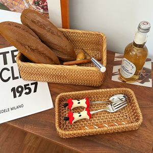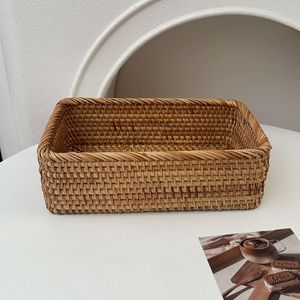 レトロイン籐収納バスケットデスクトップコーヒーテーブル雑貨収納バスケット化粧品収納バスケット竹バスケット