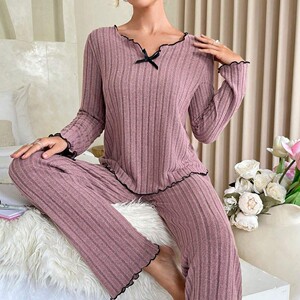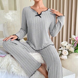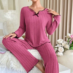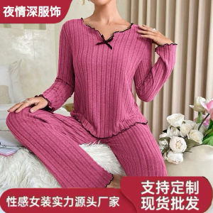 Tik Tok Amazon ヨーロッパとアメリカの秋冬ピットストリップレディースパジャマ長袖ズボンゆったりカジュアルホームウェア