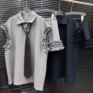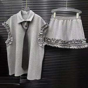 2025年夏新作ニッチデザインアメリカンホットガールスタイル木製耳ネクタイデザインノースリーブベスト+ショート